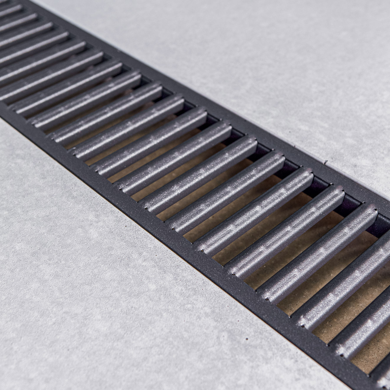 Le coating anthracite de qualité supérieure s’équilibre parfaitement avec les accents plus sombres des pavés en terre cuite et de la pierre naturelle. S’il s’agit de rompre la monotonie dans un revêtement, cette grille sera aussi très esthétique par exemple dans des pavés en terre cuite beiges ou jaunes. Par ailleurs, nous constatons aussi une tendance générale à l’utilisation combinée de différents revêtements dans un jardin ou sur une terrasse. Ce caniveau avec grille ‘Anthracite’ fait alors office de transition stylée. Faites aussi attention au pixel spécial dans notre coating.